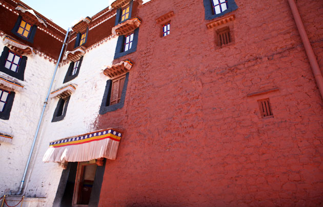 Ở cổng này có bàn kiểm tra hộ chiếu khách du lịch, nếu bạn mang hộ chiếu Việt Nam thì thủ tục kiểm tra nhanh chóng đến bất ngờ sau đó là khu vực máy scan an ninh – mọi thứ chất lỏng dạng chai lọ cỡ vừa và lớn cùng với đồ dao kéo, đồ bắt cháy … đều phải bỏ lại. Sau cửa này du khách mới thực sự đặt chân vào quần thể cung Potala, hình ảnh chánh Tây của cung – khu vực này không mở cửa cho khách vào thăm: